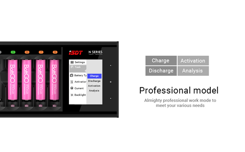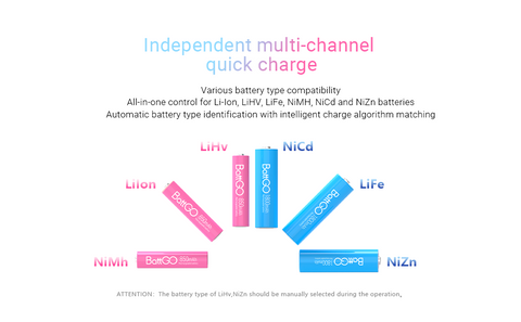 Varie Batterie di tipo batteria Controllo all-in-one per le batterie Li-ion, Lihv, Life, NIMH, NICD e Nizn Identificazione del tipo di batteria automatica con corrispondenza di algoritmo di carica intelligente.